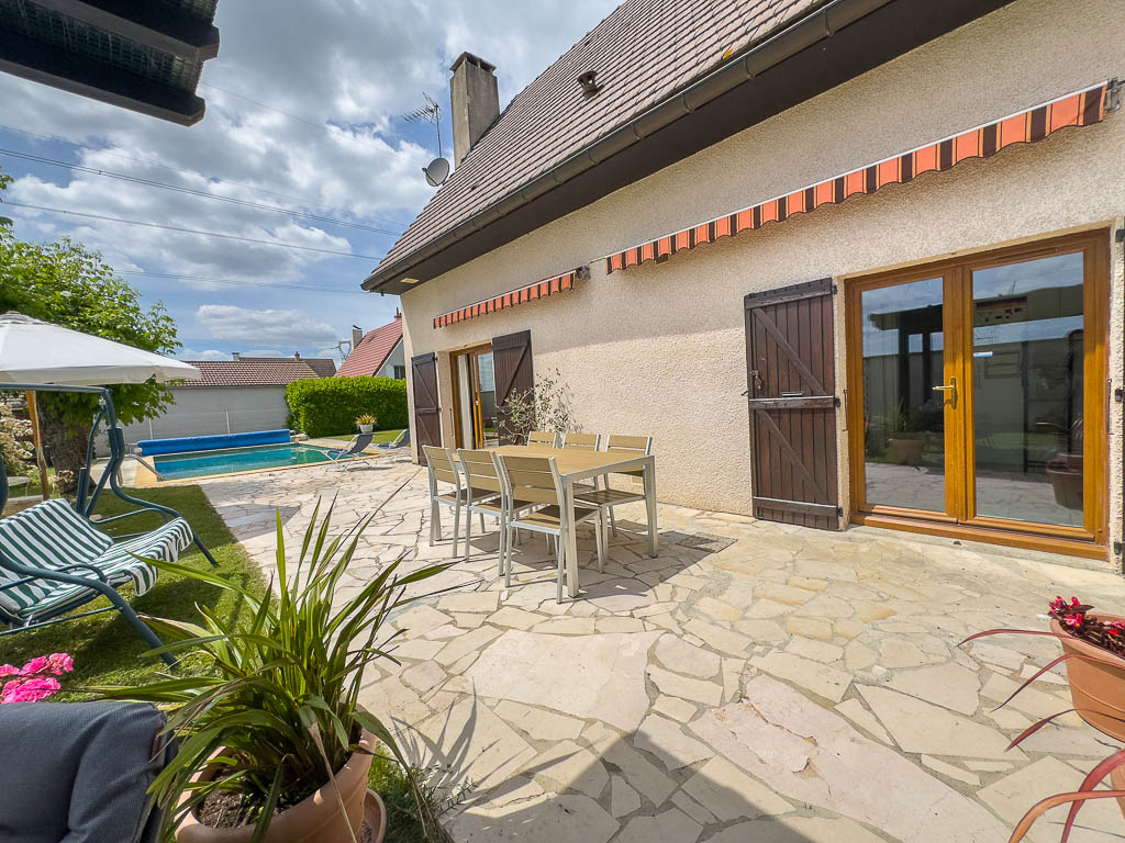 À l’extérieur, la terrasse et la piscine créent un véritable espace de détente, sans vis-à-vis, parfaitement adapté aux beaux jours.