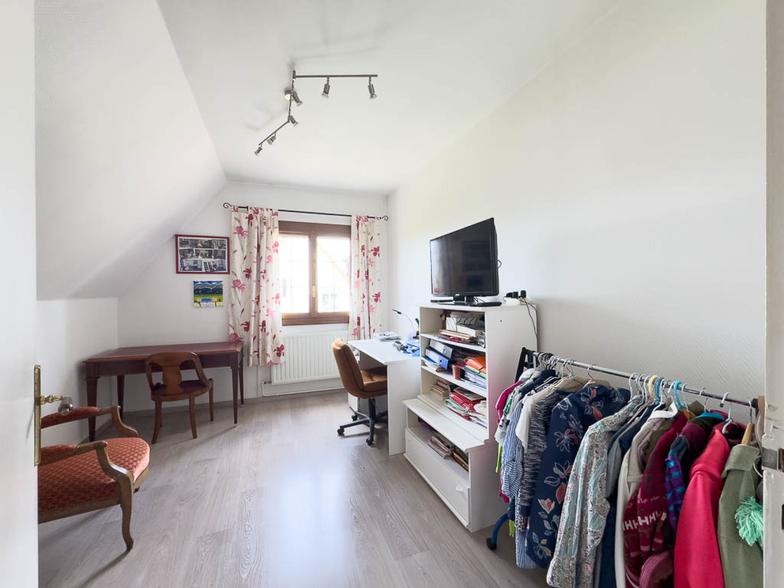 L’entrée spacieuse peut être aménagée en bureau ou en coin lecture. Le salon-séjour bénéficie d’une belle luminosité et d’une cheminée à insert. La cuisine, indépendante et rénovée en 2019, se complète d’un grand cellier. Une salle d’eau avec WC se trouve également à ce niveau.